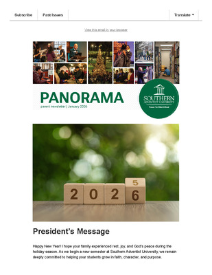 Panorama Online is Southern's e-newsletter for parents, full of the news and information you need to know. Originally published as a PDF quarterly, the publication has now transitioned to a monthly electronic newsletter.